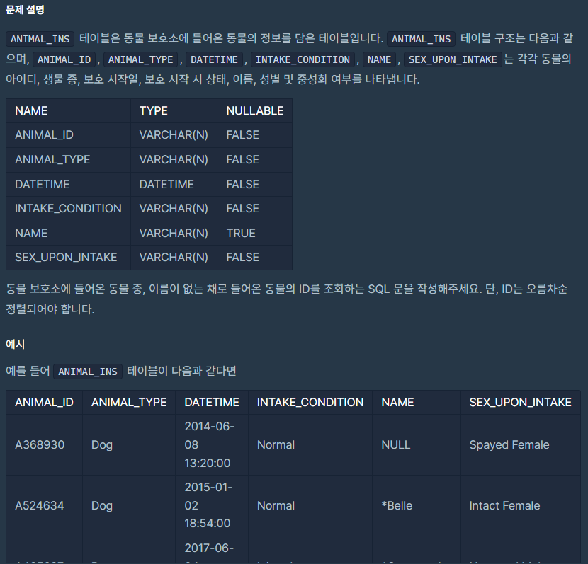 프로그래머스 - 이름이 없는 동물 아이디, 이름이 있는 동물의 아이디 (IS NULL) 본문