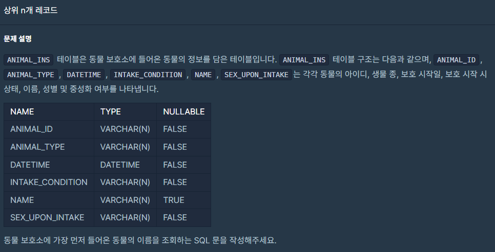 프로그래머스 - 상위 n개 레코드 (ROWNUM, LIMIT) 본문