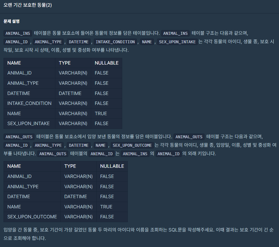 - 프로그래머스 #오랜 기간 보호한 동물(2) #프로그래머스 오랜 기간 보호한 동물(2)