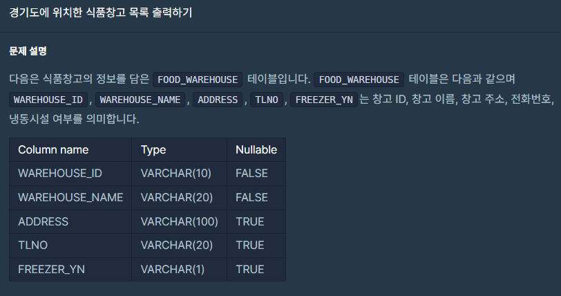 - 강원도에 위치한 생산공장 목록 출력하기 #프로그래머스 강원도에 위치한 생산공장 목록 출력하기 #프로그래머스 #경기도에 위치한 식품창고 목록 출력하기 #프로그래머스 경기도에 위치한 식