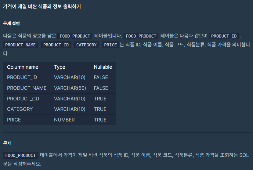 - 가격이 제일 비싼 식품의 정보 출력하기 #프로그래머스 가격이 제일 비싼 식품의 정보 출력하기 #프로그래머스 #식품분류별 가장 비싼 식품의 정보 조회하기 #프로그래머스 식품분류별 가장 비