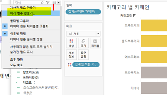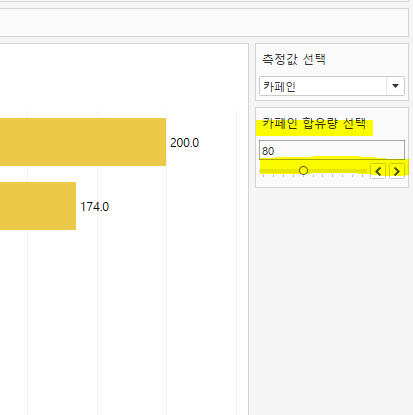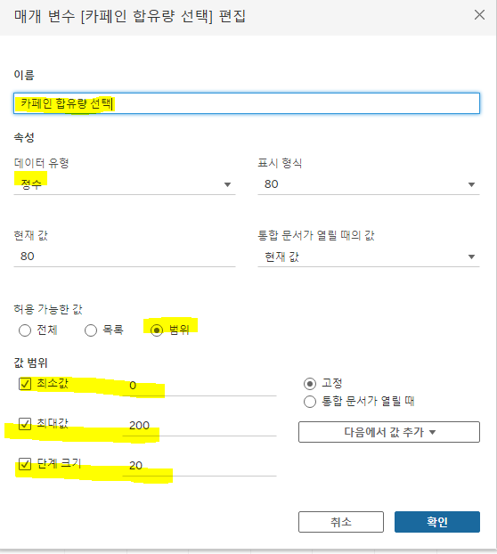 같은 방법으로 이번엔 카페인 함유량을 선택할 수 있는 매개 변수를 만든다.