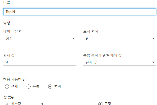 "TOP N"이라는 매개 변수를 정수로 1 ~ N개로 만든 후