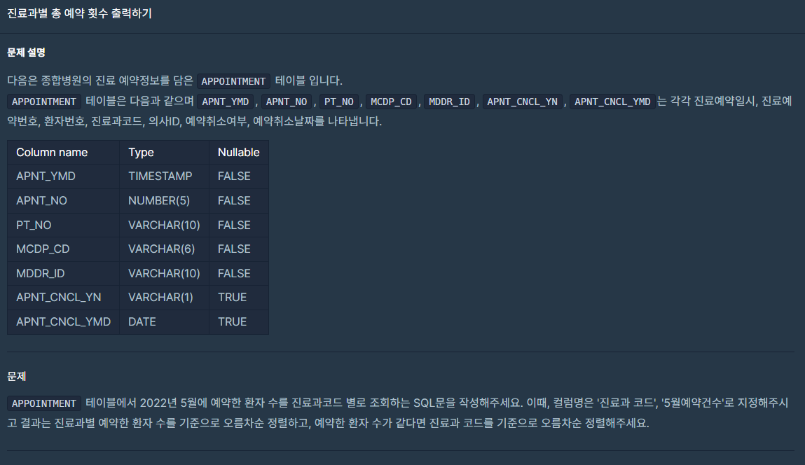 프로그래머스 - 진료과별 총 예약 횟수 출력하기 (TO_CHAR) 본문