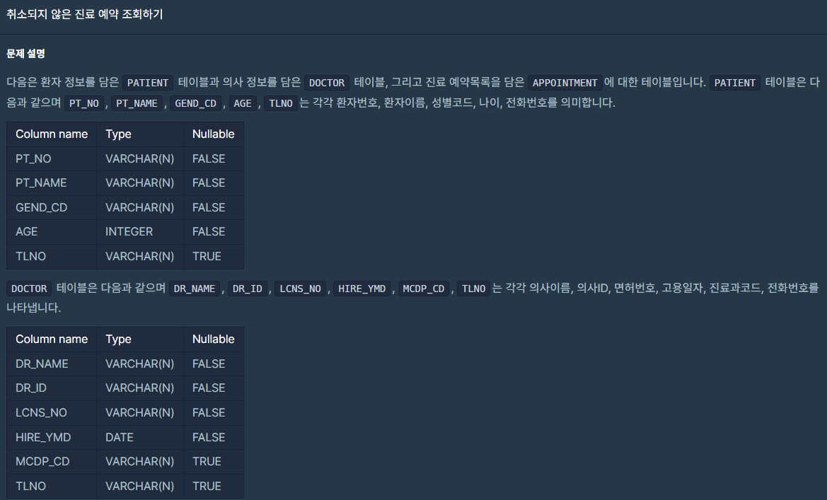 - 프로그래머스 취소되지 않은 진료 예약 조회하기 #취소되지 않은 진료 예약 조회하기