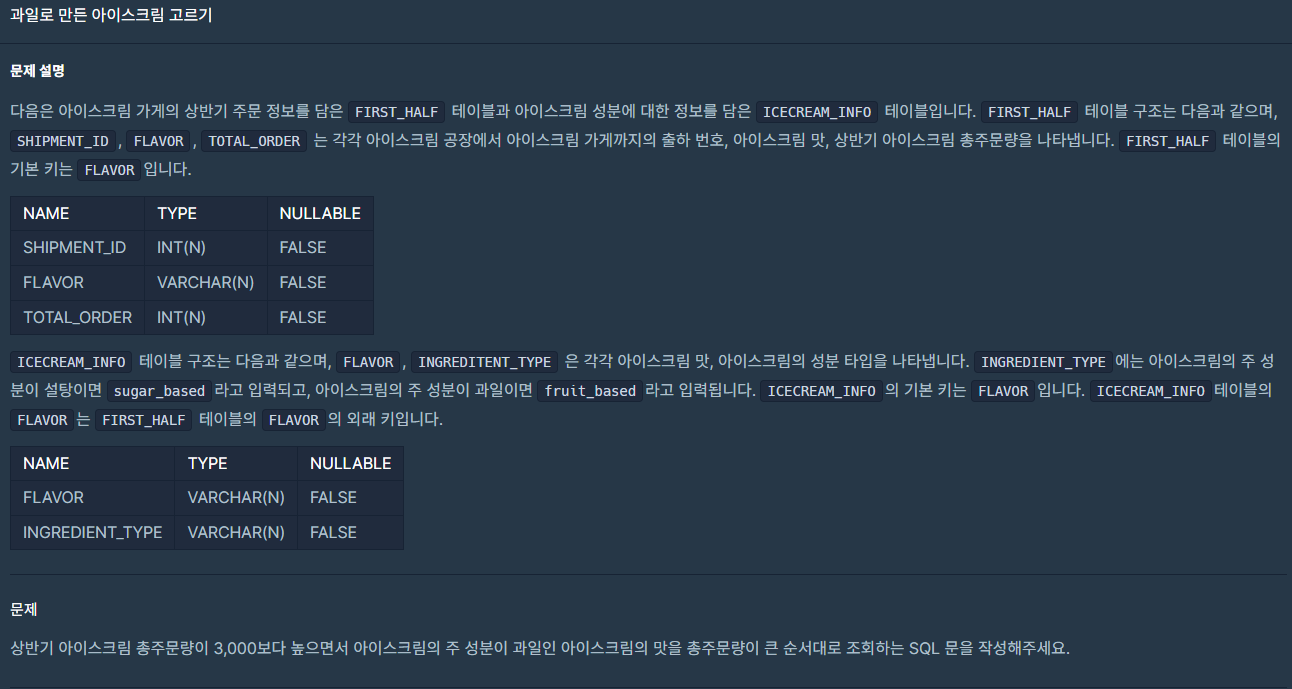 프로그래머스 - 과일로 만든 아이스크림 고르기 본문