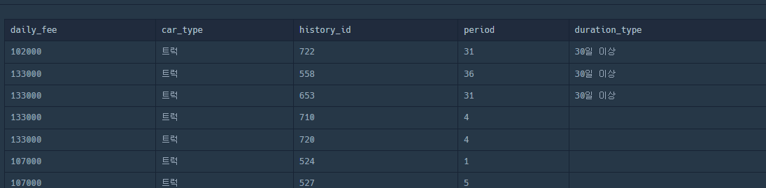 우선 대여 기간별 해당기간에 맞게 구분해준다. 실행하면