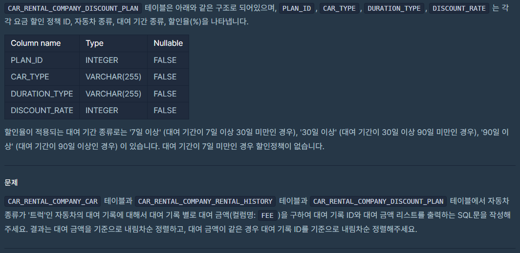 이제 새로 만들어진 DUR의 CAR_TYPE과 DURANTION_TYPE을 PLAN테이블의 CAR_TYPE과 DURANTION_TYPE를 JOIN으로 연동해주면 된다.
