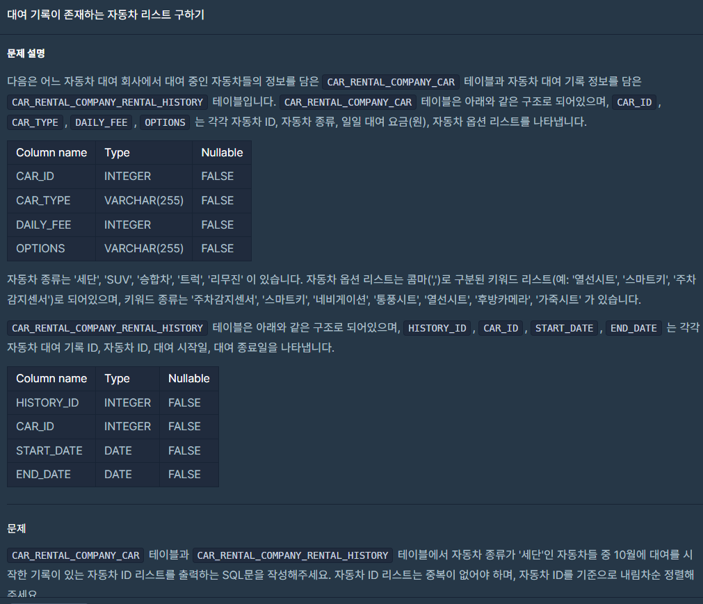 프로그래머스 - 대여 기록이 존재하는 자동차 리스트 구하기 (DISTINCT) 본문