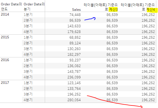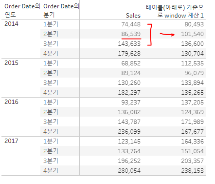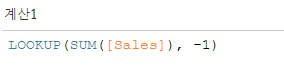 계산 1 의 경우 현재 행을 기준으로 -1만큼 지정된 대상의 값을 반환했다. (이전 1행)