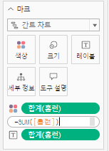 3. 칸트차트 형태로 바꿔주고 크기에 누계로 테이블 계산된 홈런을 넣어준다. 이때 축 아래에 맞춰 그래프가 그려지도록,
