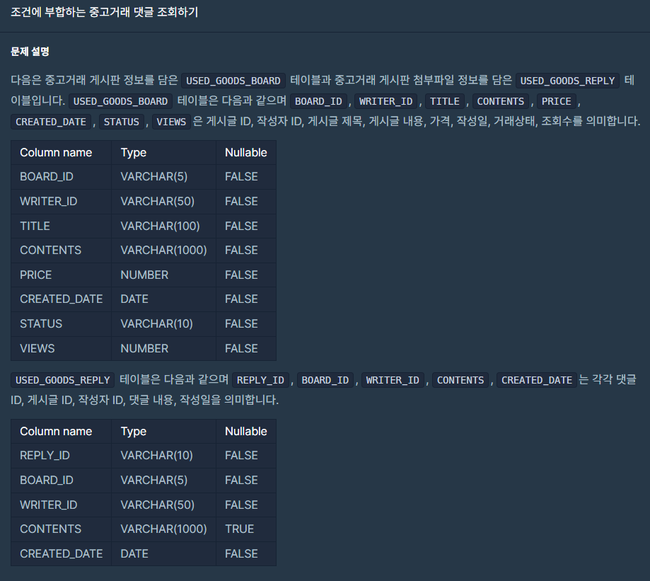 - 프로그래머스 조건에 부합하는 중고거래 댓글 조회하기