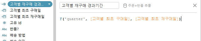 이제 최초 구매일과 최초 재구매일의 차이를 분기로 표현해보자